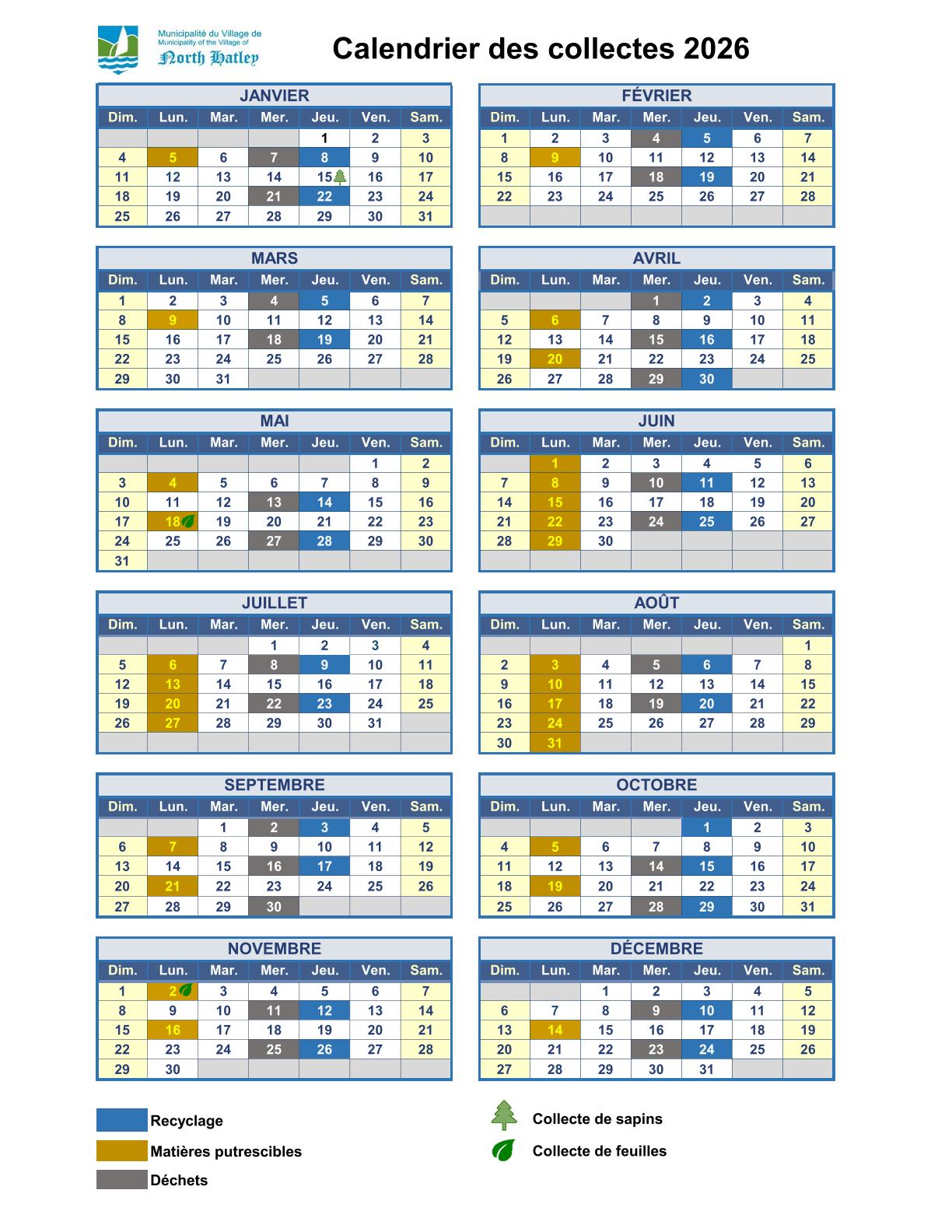 Veillez trouvez ci-joint le calendrier des collectes pour l’année 2026